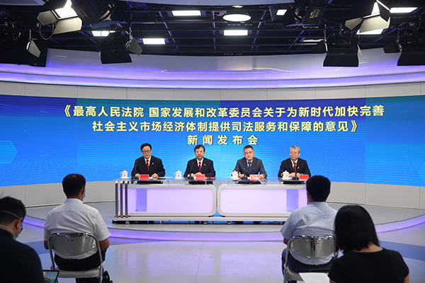 人民網(wǎng)北京7月22日電(薄晨棣)社會(huì)主義市場(chǎng)經(jīng)濟(jì)體制是中國(guó)特色社會(huì)主義的重大理論和實(shí)踐創(chuàng)新。今天,最高人民法院聯(lián)合國(guó)家發(fā)展和改革委員會(huì),共同發(fā)布《關(guān)于為新時(shí)代加快完善社會(huì)主義市場(chǎng)經(jīng)濟(jì)體制提供司法服務(wù)和保障的意見(jiàn)》(以下簡(jiǎn)稱(chēng)《貫徹意見(jiàn)》),旨在充分發(fā)揮法治保民生、固根本、穩(wěn)預(yù)期、利長(zhǎng)遠(yuǎn)的功能,營(yíng)造適應(yīng)經(jīng)濟(jì)高質(zhì)量發(fā)展的法治化營(yíng)商環(huán)境。