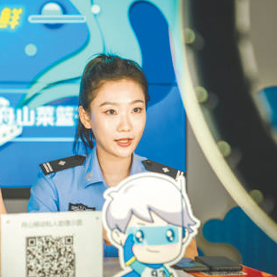浙江省舟山市公安局反詐中心民警通過(guò)網(wǎng)絡(luò)直播傳授電信網(wǎng)絡(luò)詐騙防范知識(shí)。鄒訓(xùn)勇攝(人民視覺(jué))