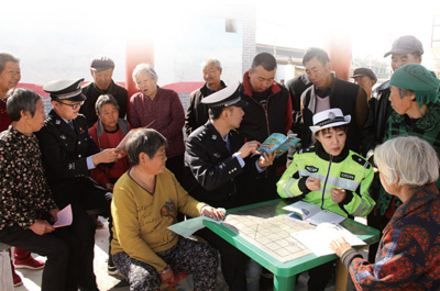 山西省靈丘縣公安局民警深入鄉(xiāng)村開(kāi)展防范電信網(wǎng)絡(luò)詐騙宣傳。劉少貝攝