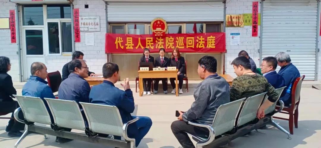 “現(xiàn)在開庭!”代縣磨坊鄉(xiāng)南家寨村村委會前,巡回法庭正在庭審,通過調(diào)解解決矛盾糾紛的同時,還給群眾上了一堂生動的法治教育公開課。