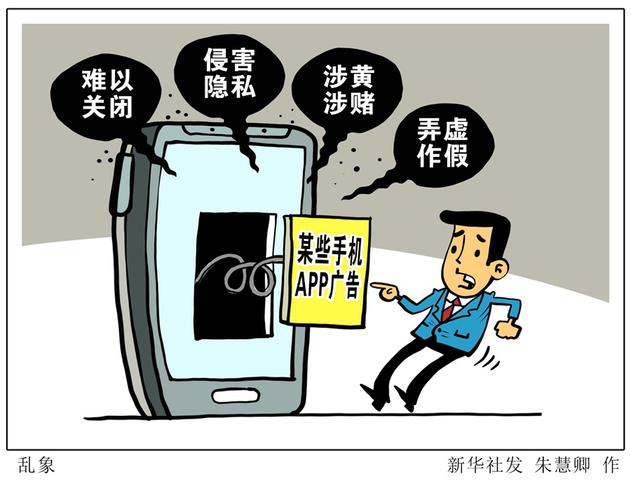 記者調(diào)查發(fā)現(xiàn),當前手機APP廣告難以關(guān)閉、侵害隱私、涉黃涉賭、弄虛作假等問題仍屢禁不止,治理力度不能減弱。