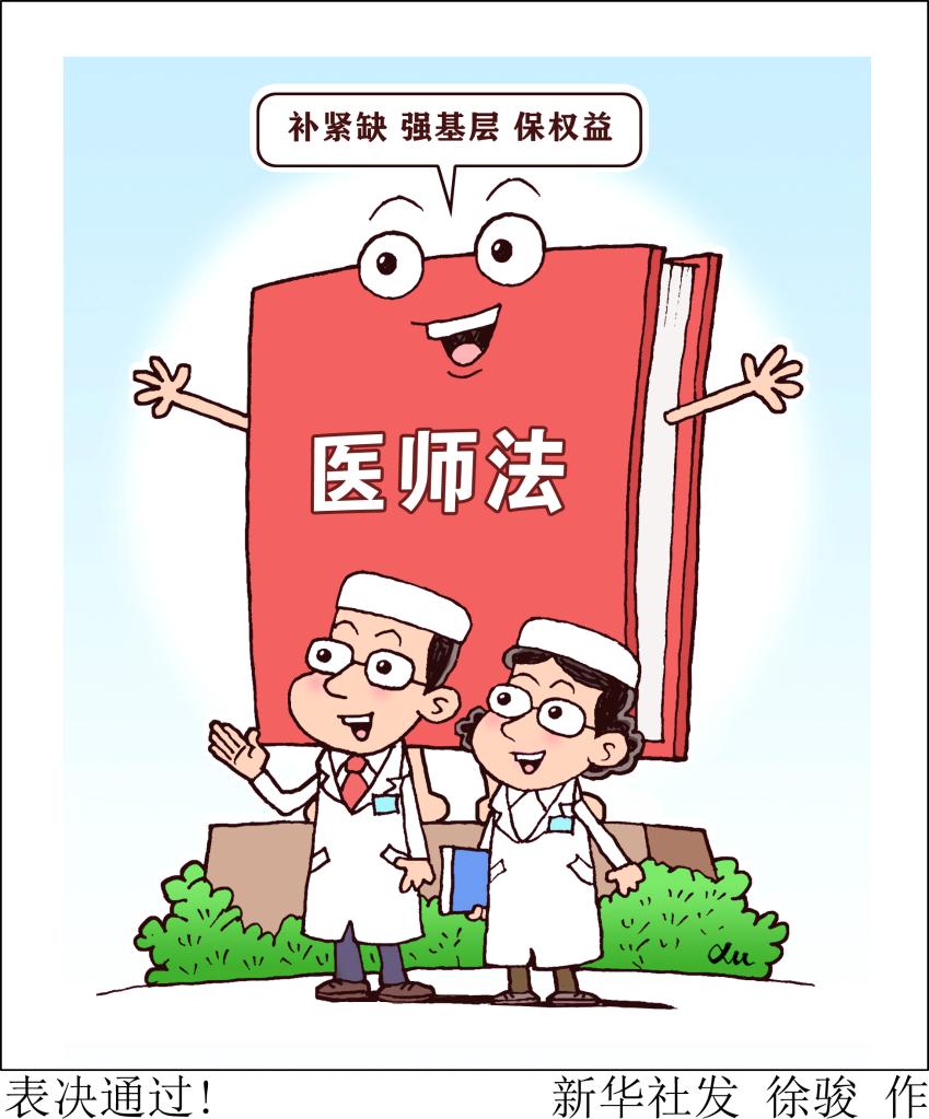 醫(yī)師是護(hù)佑人民健康的守門人。十三屆全國(guó)人大常委會(huì)第三十次會(huì)議2021年8月20日表決通過(guò)的醫(yī)師法,于2022年3月1日起施行。新華社發(fā) 徐駿 作
