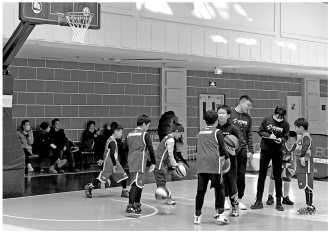 2月26日,北京市海淀區(qū)某籃球培訓(xùn)課上,孩子們在練習(xí)打籃球。