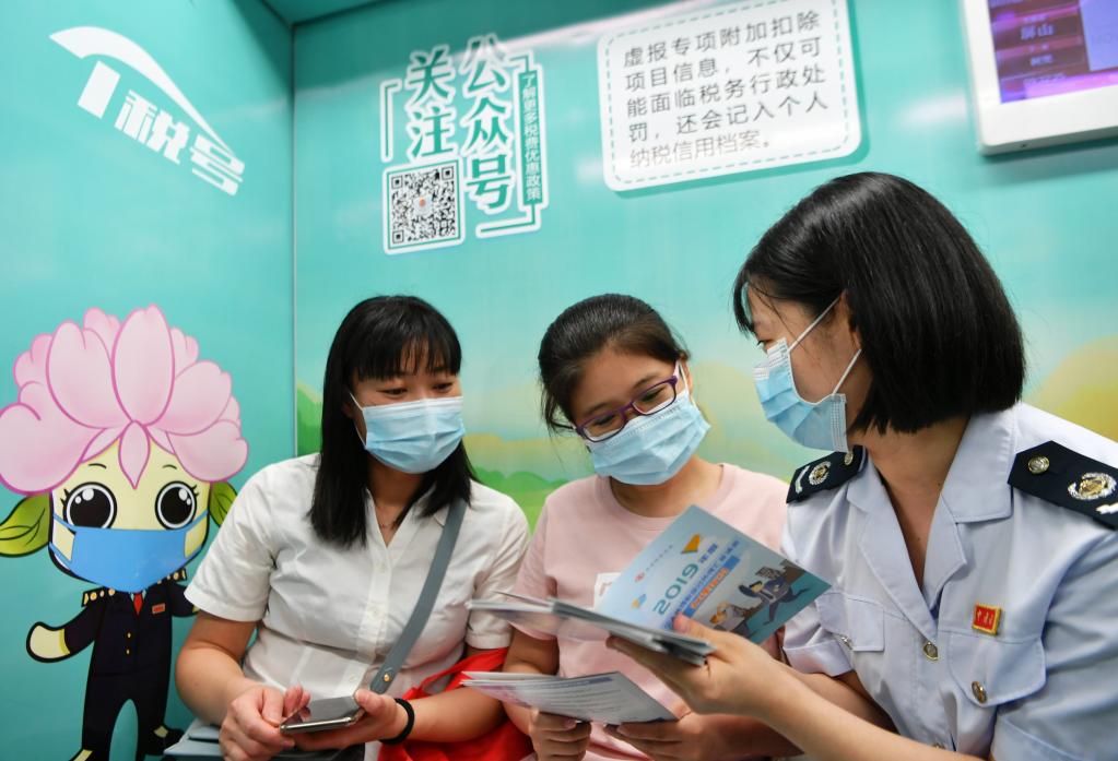 稅務(wù)工作人員向市民宣傳個(gè)人所得稅及年度匯算相關(guān)知識(shí)。新華社記者魏培全攝