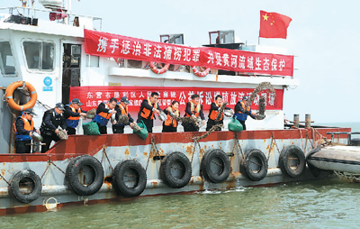 山東省東營市近日在黃河三角洲國家級自然保護(hù)區(qū)外圍毗鄰海域開展涉環(huán)境公益訴訟增殖放流活動,2300萬余粒貝類幼苗被放流入渤海。周廣學(xué)攝(人民視覺)