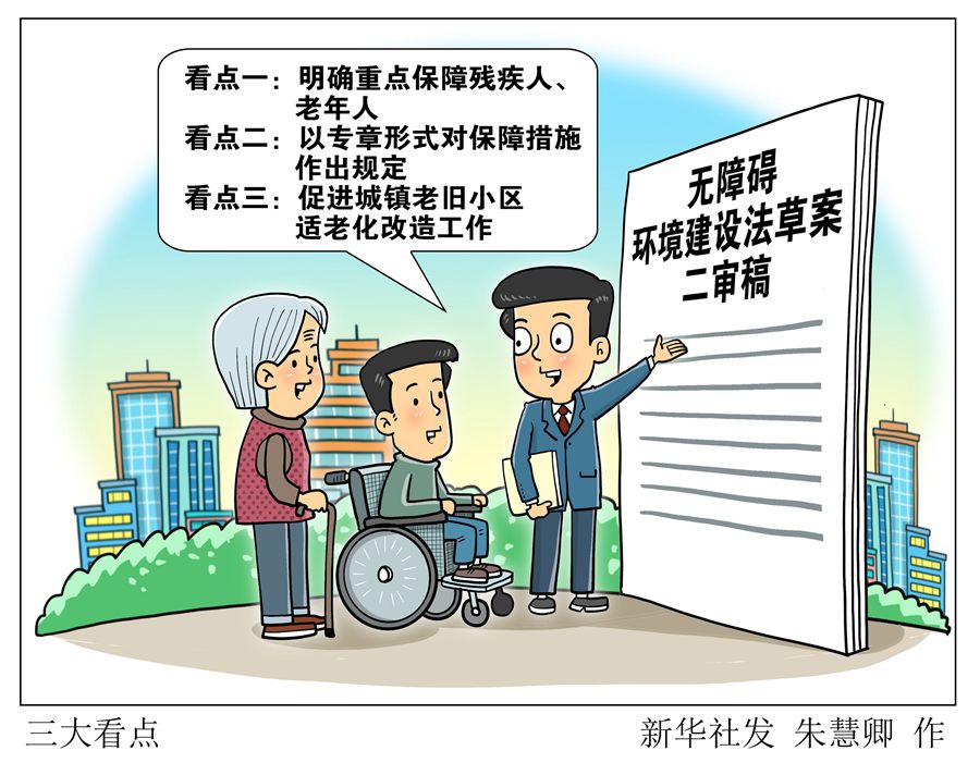 去年10月草案一審稿提請審議后,征求各方面意見。此次提請十四屆全國人大常委會第二次會議審議的草案二審稿,吸納各方面意見建議,突出無障礙環(huán)境建設基本定位,增加“保障措施”專章,進一步完善城鎮(zhèn)老舊小區(qū)無障礙設施和適老化改造中加裝電梯問題有關規(guī)定,在“重點”“難點”問題上精準“出招”。