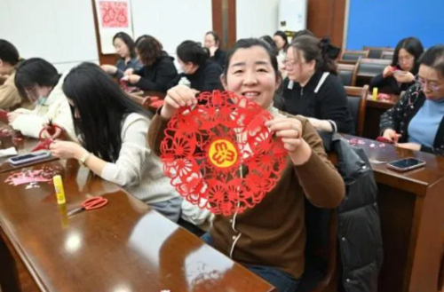 此次活動特邀五臺非遺剪紙傳承人王森煒現(xiàn)場教學,從折疊技巧到紋樣設計,從鏤空雕刻到細節(jié)精修,干警們在老師的指導下沉浸式感受剪紙藝術的魅力。紅紙翻飛間,一幅幅寓意幸福吉祥、展現(xiàn)女性力量的剪紙作品逐漸成型。指尖流淌的不僅是傳統(tǒng)技藝,更是檢察女性剛柔并濟、匠心獨運的精神底色。