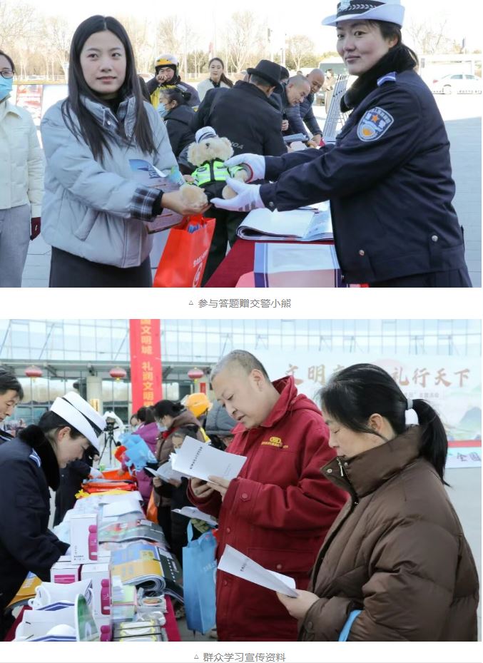 本次活動以“文明交通 禮行天下”為主題,由市公安局、市文明辦、市委網信辦、市教育局、市司法局、市交通運輸局、市應急管理局和團市委等八部門聯(lián)合主辦,旨在凝聚共治合力,推動形成新時代文明交通共識,讓文明出行理念深植人心,提升全社會文明交通水平?;顒蝇F(xiàn)場,民警和文明交通志愿者通過文藝演出、發(fā)放宣傳單、簽名承諾、有獎答題、參觀警用裝備和展板等多種形式,向群眾宣傳交通安全知識。