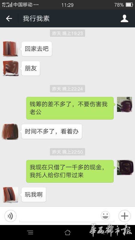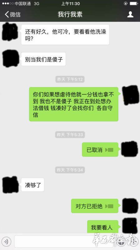 趙婷用微信與丈夫聯(lián)系,回復(fù)的人卻變成了“綁匪”,索要6萬(wàn)元的贖金,否則撕票。趙婷說(shuō),一定會(huì)湊錢(qián),但要保證王江的人生安全,不能虐待,各取所需都不為難人,“綁匪”卻一直逼問(wèn)著錢(qián)的下落,并煞有其事地強(qiáng)調(diào)“不要報(bào)警”。