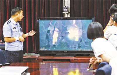 民警根據(jù)當(dāng)時(shí)拍攝的畫面講述事發(fā)經(jīng)過(guò) 攝影/本報(bào)記者 汪震龍