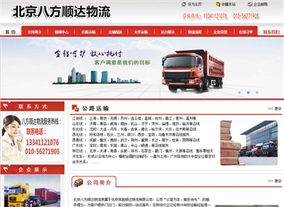 由于時間緊急,平常聯(lián)絡(luò)的物流公司暫時沒車,配送不了。當(dāng)天,該公司的行政人員從網(wǎng)絡(luò)上搜索武漢到北京的物流專線,發(fā)現(xiàn)一家名為“八方順達物流”的公司,紅色主頁的網(wǎng)站上,顯示有客服電話、物流、接單、登記、調(diào)用安排、在途追蹤等具體信息。