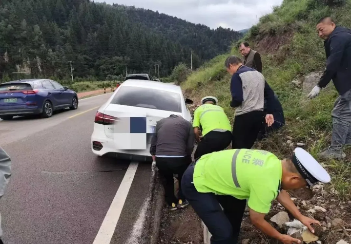 8月10日16時許,正值周六,寧武縣蘆芽山景區(qū)車水馬龍、游人如織。寧武縣公安局交警大隊輔警白濤在懸空村附近巡邏時,發(fā)現(xiàn)一輛白色轎車右側掉到排水溝里,幾位游客站在一旁,滿臉焦急,隨即上前了解情況。得知嚴先生一行四人從廣東自駕到山西旅游,慕名來到蘆芽山,因欣賞沿途美景,駕駛不慎,車輛右側掉到排水溝無法動彈。白濤立即向景區(qū)安保指揮部匯報情況,指揮部迅速指派附近巡防民輔警前往支援,并指令聯(lián)動景區(qū)工作人員共同協(xié)助游客脫困。巡防民輔警和景區(qū)工作人員齊心協(xié)力、互相配合,邊撿石頭墊車,邊喊口號推車。經(jīng)過幾輪嘗試,車子一點點挪動,二十分鐘后,終于將車子從排水溝里推出。此時,民輔警和景區(qū)工作人員已是滿頭大汗、渾身濕透,手上衣服上沾滿泥巴。嚴先生一行不停地表達著感激之情,白濤同志告訴嚴先生不要在意,這是寧武公安在景區(qū)的日常工作,每天都會幫助很多受困游客。嚴先生回到廣東后多次電話致謝,時常想起在寧武的美好旅程,他希望把寧武公安民警忠誠履職、暖心助民的精神和山西人民淳樸厚道的品質(zhì)讓更多人知道。8月16日,他通過忻州公安便民服務平臺發(fā)出了感謝信。