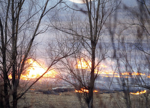 昨日(2月25日)傍晚,在忻阜高速與大運高速互通立交橋西南方向的茫茫田野里,只見煙霧彌漫,火光沖天?;鸷R谎弁坏竭呺H,升騰、翻滾的濃煙,在空中彌漫,嚴重影響司機視線,過往車輛無不小心翼翼。