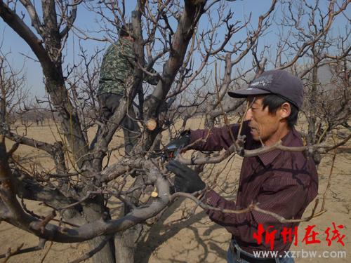 原平子干鄉(xiāng)子干村萬(wàn)畝酥梨基地成為該村發(fā)家治富的支柱產(chǎn)業(yè)。開(kāi)春以來(lái),該村村民借市委“冬季行動(dòng)”強(qiáng)勁東風(fēng),早動(dòng)手、干實(shí)事,快致富。他們及時(shí)走進(jìn)田間地頭開(kāi)展梨園管理,施肥、刮皮、噴藥、剪技。圖為該村村民伍師傅正在為梨樹(shù)剪技。(李玉生)