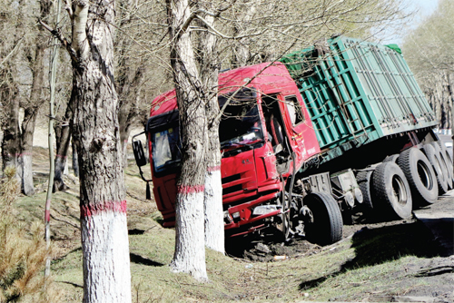 4 月20 日,記者途經(jīng)五寨縣三岔公路,看到一輛大貨車由于駕駛員疲勞駕駛撞在了路旁的大樹上,所幸未造成人員傷亡。在此筆者提醒廣大司機(jī)朋友,為了您的安全,切不可疲勞駕駛。(張志遠(yuǎn) 攝影報(bào)道)