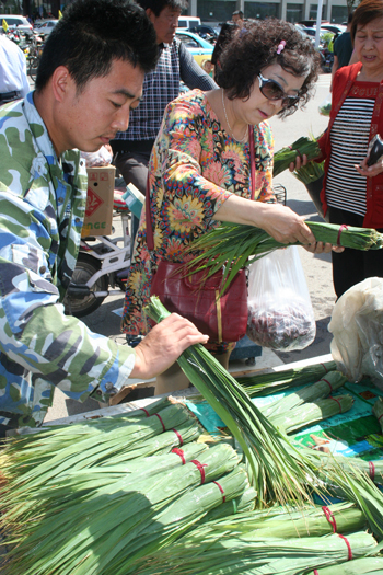 5月29日,隨著端午節(jié)的臨近,原平市子干鄉(xiāng)張家莊村農(nóng)民正在集貿(mào)市場賣粽葉,很受群眾青睞正在挑選。該鄉(xiāng)生產(chǎn)的粽葉成為遠近聞名的品牌產(chǎn)品和用戶的香餑餑。該市大力發(fā)展“一鄉(xiāng)一業(yè)”“一村一品”如今成為了農(nóng)民致富的增長點。(趙春曉 攝)