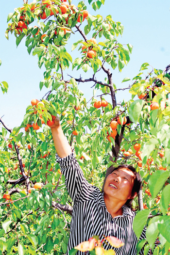 6月15日,原平市新華街村農(nóng)民正在自家杏園采摘,準備銷往市場。原平市大力發(fā)展一村一品水果種植業(yè),促進了農(nóng)民增收。(趙月仁 攝)