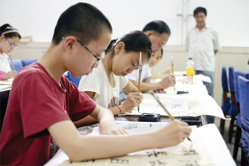 7 月17 日,在靜樂縣青少年文化活動(dòng)中心,孩子們正在認(rèn)真練習(xí)書法。進(jìn)入暑期以來,該縣興趣特長(zhǎng)班又火熱起來,學(xué)生們利用暑假時(shí)間投身于各自的興趣愛好之中,讓自己的假期變得更為充實(shí)、更有意義。(閆曉梅 攝)