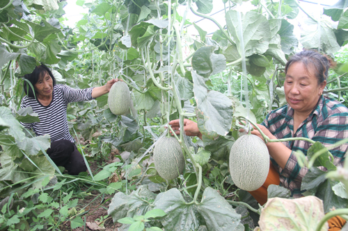7月28日,原平市雙惠現(xiàn)代農(nóng)業(yè)示范園區(qū)的哈密瓜種植基地,鋼架溫室大棚里,藤蔓在架子上攀援,繁茂的枝葉間,一個(gè)個(gè)圓滾滾的小哈密瓜已經(jīng)探出了腦袋。近年來,該園區(qū)積極探索農(nóng)民工多元增收途徑,調(diào)整農(nóng)業(yè)種植結(jié)構(gòu)。這次引進(jìn)新疆哈密瓜種植取得成功,為我市發(fā)展高效農(nóng)業(yè)起到了示范作用。圖為工作人員正在查看哈密瓜長勢,預(yù)計(jì)八月初可收摘上市。(褚震 攝)