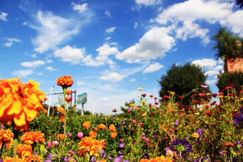 原平一座美麗富饒的北方小城,進(jìn)入秋天,仍然是美不勝收,鮮花簇?fù)?,泛黃的枝頭掛在秋天的果實,陪襯著藍(lán)天白云。圖為9月1日,原平街景一角。(吉建平 攝)