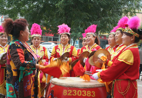9月26日,原平市姐妹威風(fēng)鑼鼓隊的人員正在敲鑼打鼓慶豐收,進(jìn)入金秋以來。該市群眾們采取形式多樣豐富多彩的活動來慶豐收