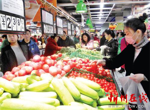 11月18日,原平市市民正在超市挑選各種新鮮蔬菜。該市大力發(fā)展高效設施農業(yè)大棚蔬菜種植業(yè),使市民們一年四季吃上了鮮菜,同時也增加了農民收入