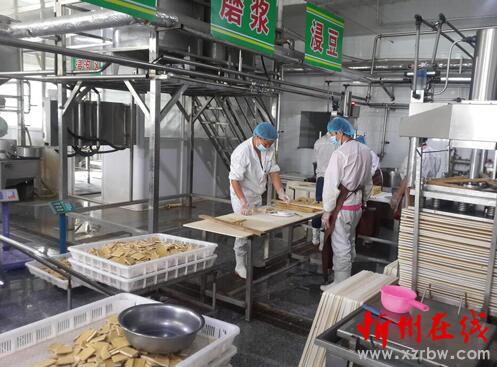 一套套全新的機(jī)械設(shè)備不停地運(yùn)轉(zhuǎn),新鮮的大黃豆經(jīng)過(guò)浸泡——?dú)⒕{——過(guò)濾——煮漿——混合——凝固——?jiǎng)澞X——壓制成型,透著香味的豆腐干經(jīng)過(guò)真空包裝,通過(guò)物流運(yùn)往北京、太原、大同等地的超市,這是繁峙縣綠源亨通食品有限公司豆腐干生產(chǎn)線,2016年已加工500噸豆腐干,實(shí)現(xiàn)產(chǎn)值500萬(wàn)元,帶動(dòng)周邊上百名農(nóng)民增收。(喬偉 攝)