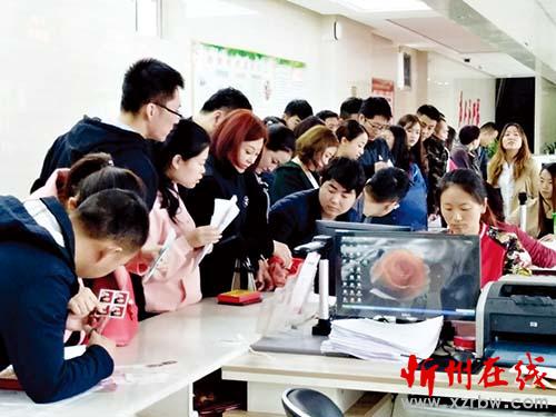 本報(bào)訊10月10日,寓意“十全十美、幸福快樂”,一大早,在城區(qū)慕山南路忻府區(qū)政務(wù)大廳前,就有好幾對準(zhǔn)新人等候在那里,準(zhǔn)備領(lǐng)取結(jié)婚證。記者在現(xiàn)場看到,還有一對對準(zhǔn)新人正陸續(xù)走進(jìn)大廳。