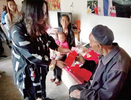 郎眉栓夫婦倆生活在黑山溝村,靠種地為生,有一顆仁愛之心。他們夫婦倆從2011年開始收養(yǎng)幾名因天生殘疾被父母遺棄的孩子。2017年深圳建輝基金會攜手老醯兒公益團體,在山西開展致敬行善者(尋找困境中的行善者)慈善活動,繁峙縣青年社愛心志愿者將郎眉栓夫婦的事跡作了詳細介紹,經(jīng)深圳建輝基金會評審,決定對郎眉栓夫婦進行資助。繁峙縣青年社愛心志愿者們帶著建輝基金會對老人的誠摯慰問以及價值200元的糧油米面慰問品來看望老人,該社負責人親手將建輝基金會資助老人的1000元慰問金遞交到老人手中,向老夫婦的行善事跡致敬。