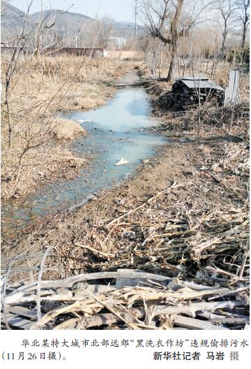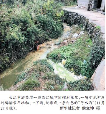 而在離城區(qū)稍遠(yuǎn)的農(nóng)村,部分不法村鎮(zhèn)小作坊等污水違規(guī)排放時(shí)有發(fā)生。檢查組發(fā)現(xiàn),長(zhǎng)江中游某省一座沿江城市所轄村莊里,一磷礦尾礦庫(kù)的磷渣常年堆積,一下雨,就形成一條白色的“污水溝”。檢查組在華北某特大城市北部遠(yuǎn)郊一村中實(shí)地檢查時(shí)發(fā)現(xiàn),該村“黑洗衣作坊”違規(guī)偷排污水,污染環(huán)境。