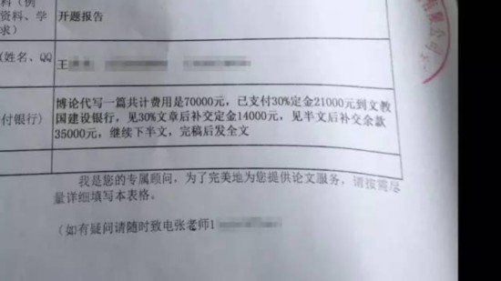 東北一所高校的一位在讀博士生定制的博士論文。全文12萬(wàn)字,全款高達(dá)7萬(wàn)元,買家已經(jīng)支付了2萬(wàn)多元的訂金