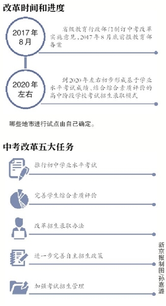 根據(jù)安排,省級教育行政部門負(fù)責(zé)制訂中考改革實(shí)施意見,并于2017年8月底前報(bào)教育部備案。同時(shí),綜合改革試點(diǎn)將從2017年之后入學(xué)的初中一年級學(xué)生開始實(shí)施,目前初中在校生、非試點(diǎn)地市仍執(zhí)行原來的考試招生辦法。