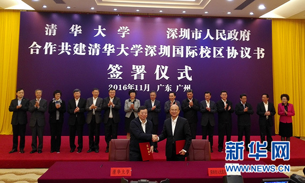 新華網北京11月4日電 今日,清華大學與深圳市人民政府在廣州簽署協(xié)議,在清華大學深圳研究生院、清華-伯克利深圳學院的辦學基礎上,進一步深化合作、拓展升級,共建清華大學深圳國際校區(qū)(Tsinghua University Shenzhen Global Campus, TUSGC,以下簡稱“國際校區(qū)”)。中共中央政治局委員、廣東省委書記胡春華,廣東省委副書記、省長朱小丹,廣東省委副書記、深圳市委書記馬興瑞,清華大學黨委書記陳旭等出席簽字儀式,清華大學校長邱勇和深圳市長許勤代表雙方簽署了合作協(xié)議。