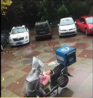 東方網(wǎng)12月30日消息:前兩天上海又是下雨又是降溫,有網(wǎng)友就拍到了這樣一張照片,讓很多人看到了心里很不是滋味。大屏幕上的這張照片當(dāng)中我們能看到有一名3歲的小女孩仰面躺在一輛送外賣的電動車上,也許是累了,即便是下著雨也是睡得很香甜。她為什么會獨(dú)自一人睡在外賣車上,她的父母又在哪里呢。
