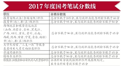 今年的分?jǐn)?shù)線與往年基本保持持平,報考省級以上(含副省級)職位的合格分?jǐn)?shù)線為:總分不低于105分,且行政職業(yè)能力測驗不低于60分;報考市(地)、縣(區(qū))級職位的合格分?jǐn)?shù)線為:總分不低于95分,且行政職業(yè)能力測驗不低于50分。