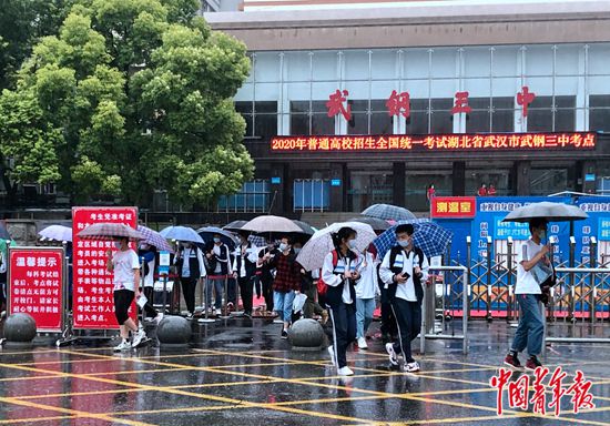 7月7日上午,湖北省武漢市武鋼三中考點(diǎn),語文考試結(jié)束后,考生們陸續(xù)走出考場。中青報(bào)·中青網(wǎng)記者 朱娟娟/攝