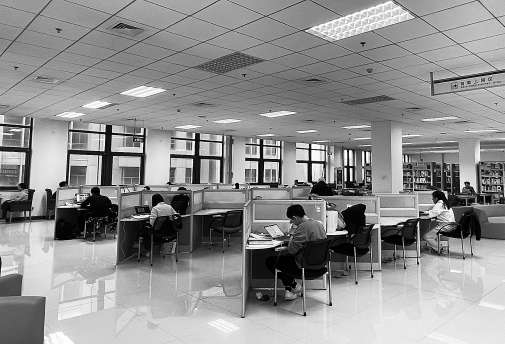 北京電子科技職業(yè)學(xué)院圖書(shū)館,有隔板有電源的自習(xí)區(qū)域很受歡迎。