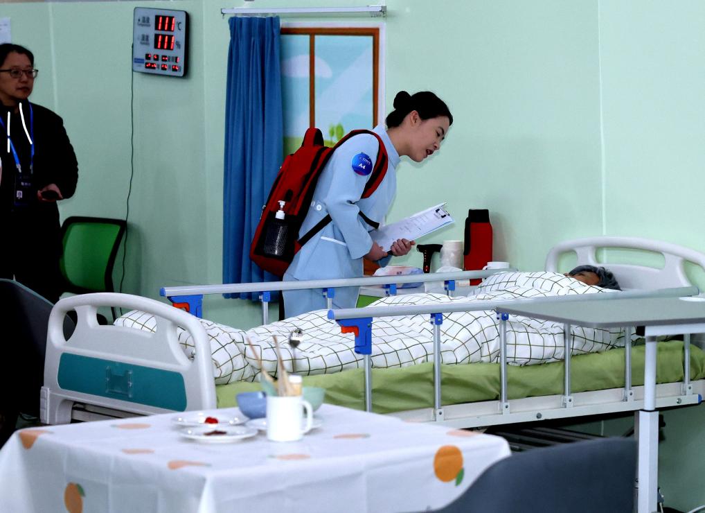 5月8日,第二屆全國鄉(xiāng)村振興職業(yè)技能大賽養(yǎng)老護(hù)理項(xiàng)目比賽現(xiàn)場。新華社記者 劉續(xù) 攝