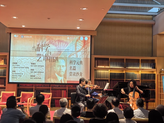 隨著燈光的調(diào)暗,一段優(yōu)美的旋律響起,舞臺上的“基因三重奏”組合開始演奏《莫扎特主題華麗變奏曲》,開啟一段科學(xué)與藝術(shù)的邂逅。