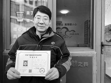 聽說學員通過考試后可以獲得國家承認的成人中專畢業(yè)證書,學習費用全部由街道補貼,蔣風登立刻動了心。在工作人員的幫助下,他報名學習計算機應用專業(yè),開始了半工半讀的生活。晚上下班回到家,他一遍遍地刷著網課;白天,他利用送快遞的間隙鞏固知識點。經過一年的學習,2024年3月,他順利拿到了畢業(yè)證。
