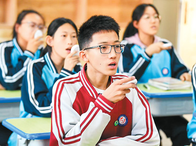 昆都侖區(qū)一所中學(xué)的學(xué)生使用英語聽說學(xué)習(xí)平臺進(jìn)行練習(xí)。昆都侖區(qū)教育局供圖