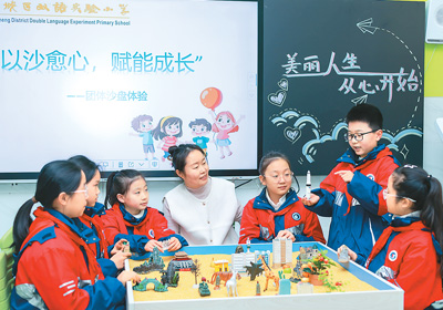 近日,多地中小學(xué)開學(xué),迎來春季新學(xué)期。圖為山東省棗莊市薛城區(qū)雙語實(shí)驗(yàn)小學(xué)老師為學(xué)生進(jìn)行心理健康輔導(dǎo)。王龍飛攝(新華社發(fā))