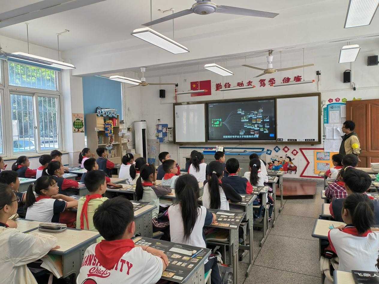 陳娟介紹,該校去年起引入“飛象人工智能通識(shí)課”,采用螺旋式進(jìn)階設(shè)計(jì),10門、160節(jié)分層進(jìn)階的課程體系,貫穿真實(shí)生活場(chǎng)景。記者現(xiàn)場(chǎng)看到,在“智能雙師”授課模式下,線上大屏的老師設(shè)計(jì)課程任務(wù),線下課堂老師把控課堂節(jié)奏,組織學(xué)生互動(dòng)討論,并對(duì)討論成果實(shí)時(shí)評(píng)價(jià)。