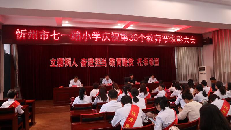 金風(fēng)送爽,涼霜驚秋。伴隨著時(shí)光款款的腳步,相攜著歲月累累的果實(shí),為傳承尊師重教的文明火種,增強(qiáng)教師的光榮感、責(zé)任感、使命感,培養(yǎng)學(xué)生尊師重教的良好品德,在第36個教師節(jié)即將來臨之際,9月9日下午,忻州市七一路小學(xué)舉行了“立德樹人奮進(jìn)擔(dān)當(dāng),教育脫貧托舉希望”第36個教師節(jié)表彰活動,會議由郭彥君副校長主持,全體教職工參加了表彰大會。