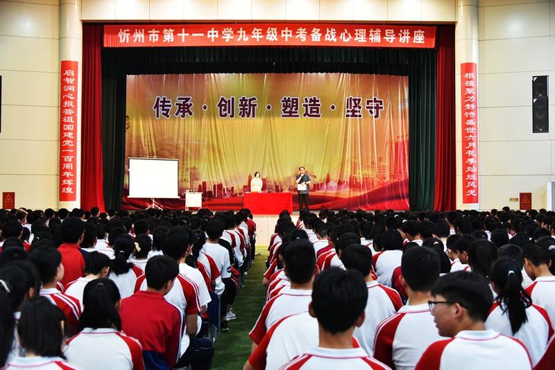 本網(wǎng)訊 6月3日晚,忻州十一中特邀資深心理專家張廣梅老師在文體苑為九年級學(xué)生做了中考備戰(zhàn)心理輔導(dǎo)講座。校長張?jiān)崎L主持講座并講話。