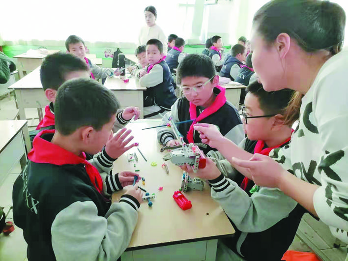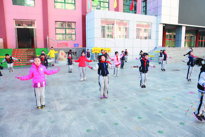 冬日暖陽下,忻州市實(shí)驗(yàn)小學(xué)校園里一派生機(jī)勃勃的景象。武術(shù)訓(xùn)練場上,孩子們正在認(rèn)真扎馬步、練拳術(shù),一招一式打得虎虎生威,眼睛里閃爍著堅(jiān)毅和自信的光芒。百人腰鼓隊(duì)排著整齊的隊(duì)伍,伴著音樂的節(jié)奏不停變換著步伐,鼓槌上的紅綢子上下舞動,看得人眼花繚亂?;ㄊ交@球挑戰(zhàn)籃球極限,展示籃球技術(shù)和表演的完美結(jié)合。花樣跳繩中,孩子們在環(huán)擺的繩索中做著各種跳躍動作……操場上,熱火朝天,教學(xué)樓里,每一間教室里都散發(fā)著濃濃的趣味性。“一撇一捺,書寫堂堂正正中國字”“編程要注意邏輯關(guān)系”“三原色是哪些顏色呢?”……這是市實(shí)驗(yàn)小學(xué)每周三開展的第二課堂綜合實(shí)踐活動,也是孩子們最興奮最高興的校園時(shí)光。