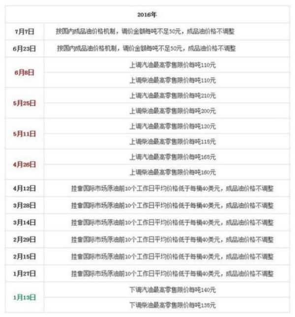 國(guó)家發(fā)改委歷次成品油價(jià)格調(diào)整匯總表。來(lái)源:隆眾石化網(wǎng)