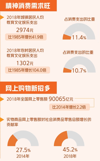 其次,供給側(cè)結(jié)構(gòu)性改革降低各種制度成本,增強了微觀主體活力,創(chuàng)造了消費需求躍升的新動力。根據(jù)國家統(tǒng)計局測算,2019年創(chuàng)新驅(qū)動指數(shù)為201.4,比上年增長15.6%。其中,全國研究與試驗發(fā)展(R&D)經(jīng)費支出與GDP之比為2.19%,比上年提高0.05個百分點。企業(yè)愿意為創(chuàng)新投入,舍得為創(chuàng)新投入,創(chuàng)造更多新產(chǎn)品、新服務、新業(yè)態(tài)和新模式,創(chuàng)造新的消費需求,改善消費體驗。