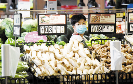 8月10日,消費(fèi)者在河北省邯鄲市峰峰礦區(qū)一家超市選購蔬菜。新華社發(fā)(郝群英 攝)