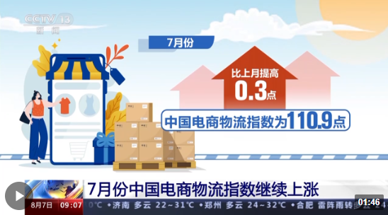 中國物流與采購聯(lián)合會(huì)今天(7日)公布了7月份中國電商物流指數(shù)。受益于供給端各項(xiàng)指數(shù)的穩(wěn)步上漲,中國電商物流指數(shù)較上月有所提高,繼續(xù)保持連續(xù)上漲態(tài)勢(shì)。